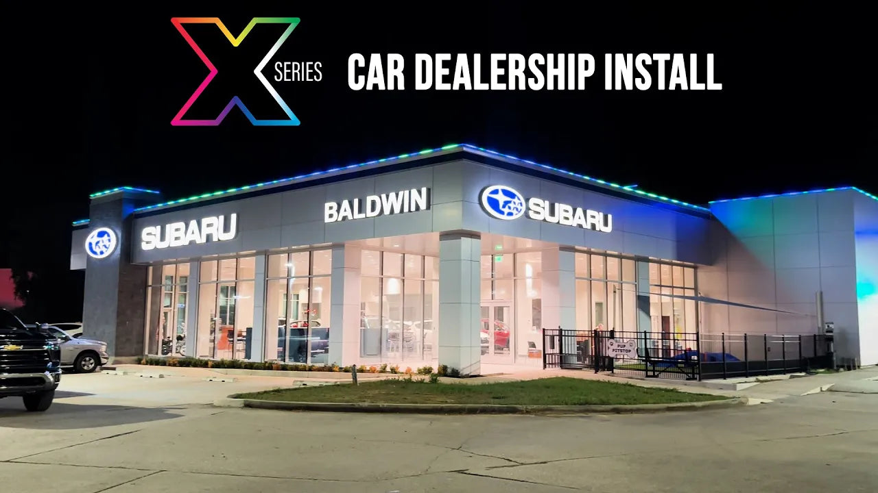Color lighting can be a powerful tool in differentiating an automotive dealership by enhancing the visual appeal of the exterior of the building and the showroom. Strategic use of lighting in bold, brand-specific colors can reinforce a dealership’s identity and create a memorable, immersive experience for customers. Color lighting around the dealership exterior can attract attention from passing traffic, especially during nighttime hours, ensuring the lot looks inviting and dynamic.
