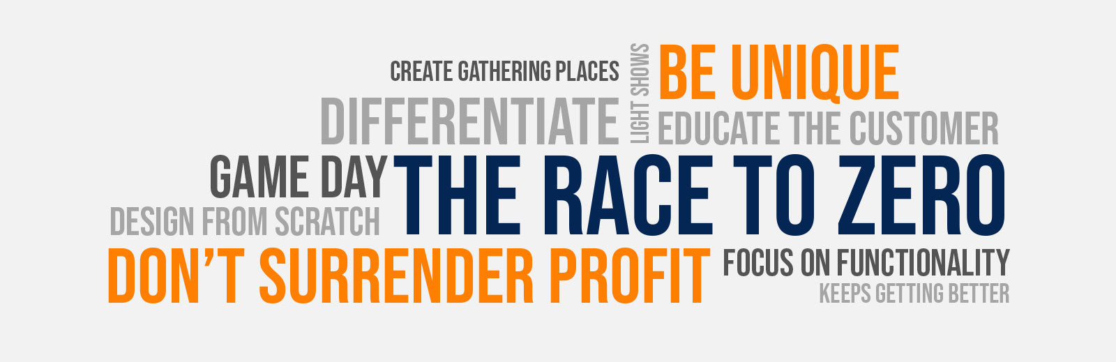 This is what we call “the race to zero.” What does that mean? It’s when the entire process has the customer focused on completely the wrong things. Instead of educating the customer on the benefits of the system, you get pigeonholed into selling on warranties, slightly different colors of track, or the worst of all worlds, price. Nobody wins in this scenario. The customer doesn’t win because they are focused on the wrong things. And you don’t win because the customer is focused on the wrong things.